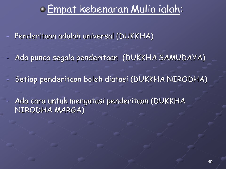 Agama ini memberi penekanan terhadap konsep Dharma yang menjelaskan Empat Kebenaran Mulia dan Jalan Lapan Mulia bagi mengatasi Samsara (kesengsaraan) dan kitaran kelahiran semula.
