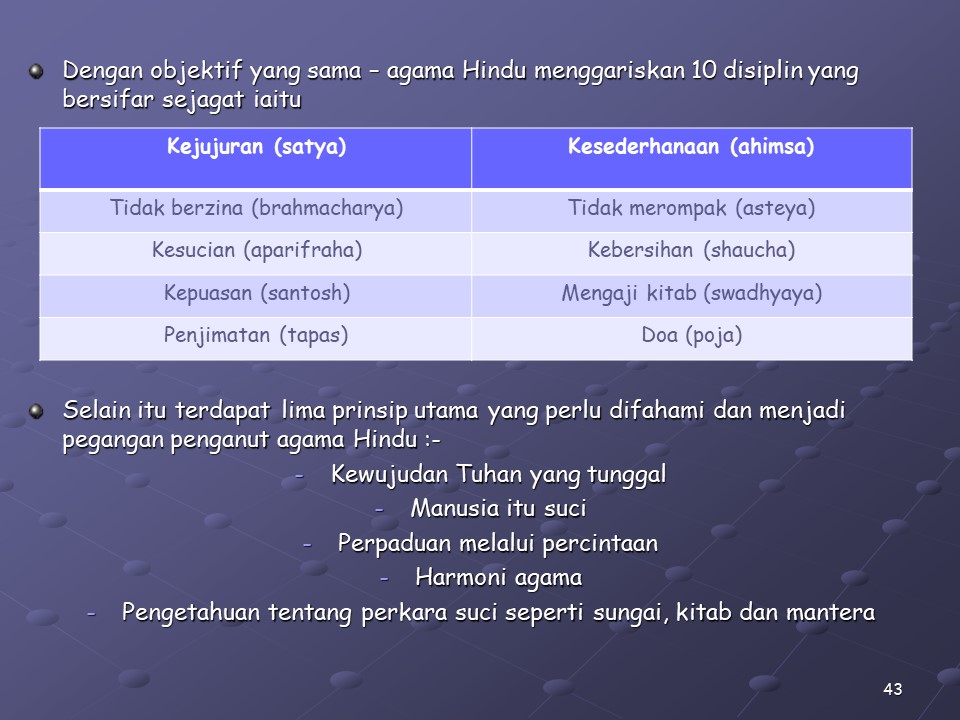 - Aspek kesusasteraan – ajarannya ( kitab Mahabarata, Bhagavad Sita dan Baratyudha ) lebih kepada kesenian, keindahan, ketakjuban, epik, mitos sastera keperwiraan berbanding aspek rasional dan intelektual (bersendikan akal dan pengetahuan akliah), diperkenalkan apabila orang Melayu menerima Islam.