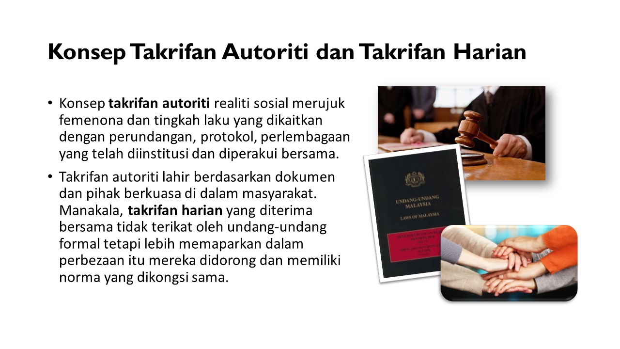 Era Revolusi Industri Ke-4 (IRA,O) menyaksikan perubahan drastik dalam kehidupan masyarakat lokal dan global. Cabaran IR4.0 telah memberikan impak yang besar dalam aspek ekonomi, politik dan sosial masyarakat. Namun, jika diteliti secara mendalam dalam konteks realiti sosial masyarakat sejagat, ia terbahagi kepada dua perspektif utama. Pertama, realiti sosial yang ditentukan oleh pihak berkuasa yang secara praktisnya berciri dari atas ke bawah (top-down) atau disebut juga sebagai takrifan autoriti. Kedua, realiti sosial yang lebih terbuka iaitu ditentukan oleh setiap individu, keluarga dan komuniti demi keperluan seharian masing-masing atau distilahkan juga sebagai takrifan harian.